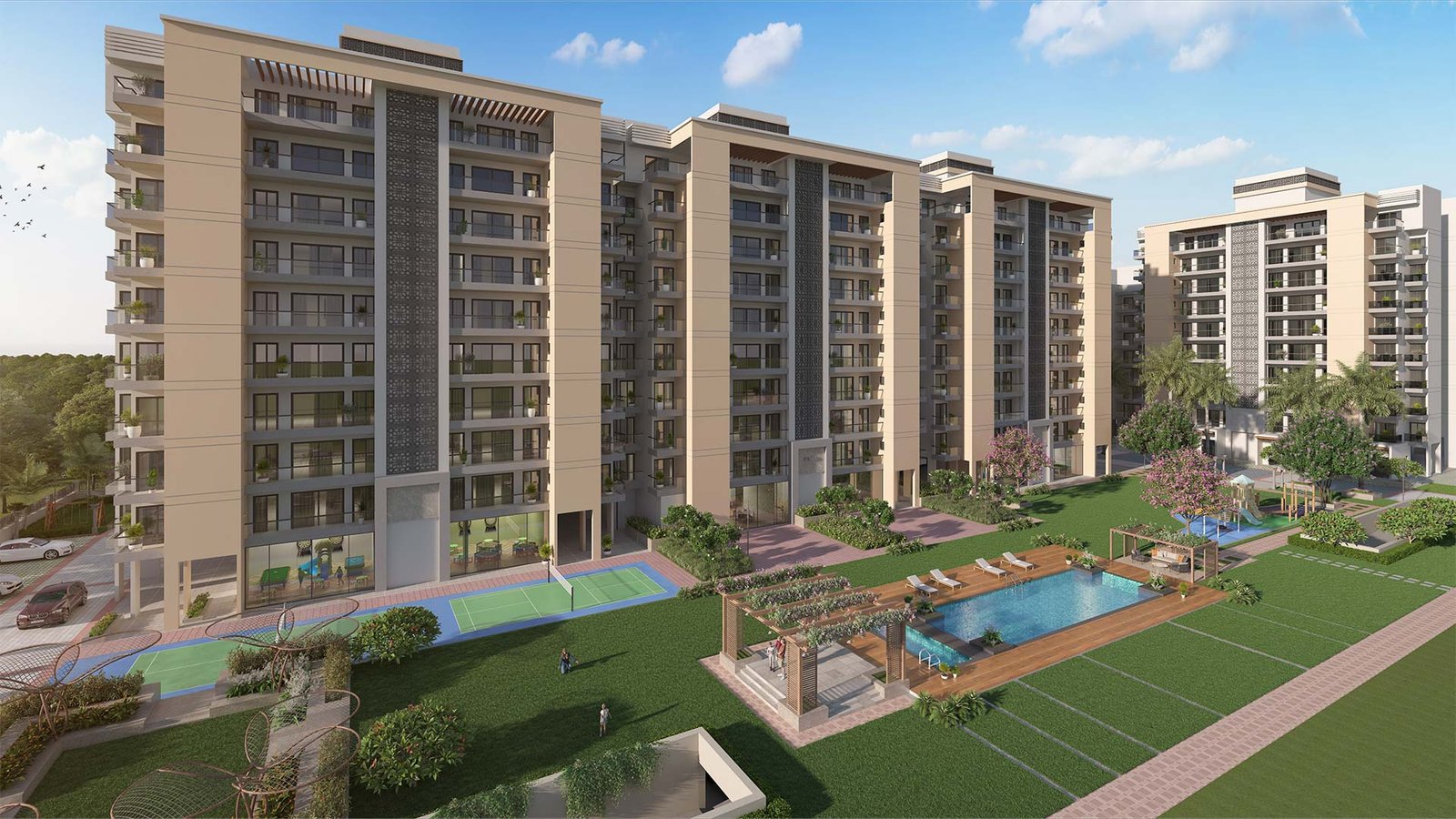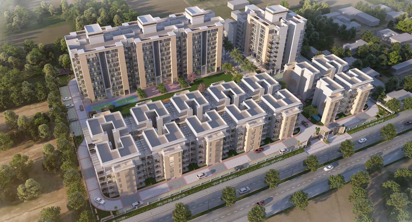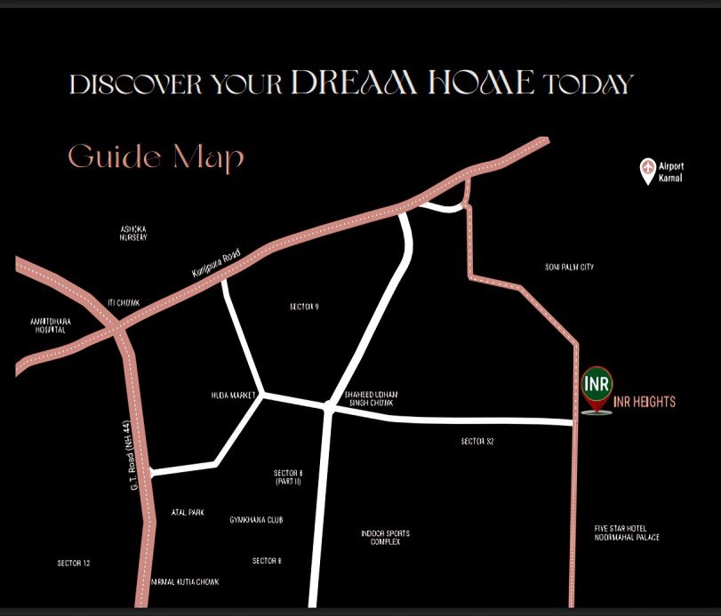 INR Heights, an esteemed project by Skyhigh Infraland, offers an extraordinary living experience with ultra-modern 3 BHK, and 4 BHK flats. Situated in a prime location of Karnal City, INR Heights is designed to elevate your lifestyle with a host of world-class amenities. Take a refreshing swim in our pristine swimming pool, let your children enjoy the dedicated Kids Zone, and stay fit in our state-of-the-art gymnasium. Enjoy a game of badminton or billiards, and relax in the serene Central Park. Our 24×7 security ensures peace of mind, while reserved car parking adds convenience. Unwind in our luxurious steam bath, dine at our on-site restaurant, and find tranquility in the meditation lawn. With EV charging points, we support sustainable living for electric vehicle owners. INR Heights is designed to provide a sophisticated and comfortable living environment, making it the perfect place to call home. Experience the best of modern living at INR Heights.